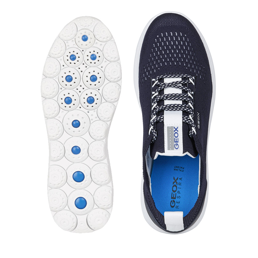 • Interior: Fabric • Exterior: Fabric • Fastening: Laces • Features Geox Respira technology that allows the foot to breathe. • GEOX branding High-tech men's sneaker that offers exceptional levels of comfort and excellent shock protection. A knit-effect upper is available, perfecting its iconic urban chic.