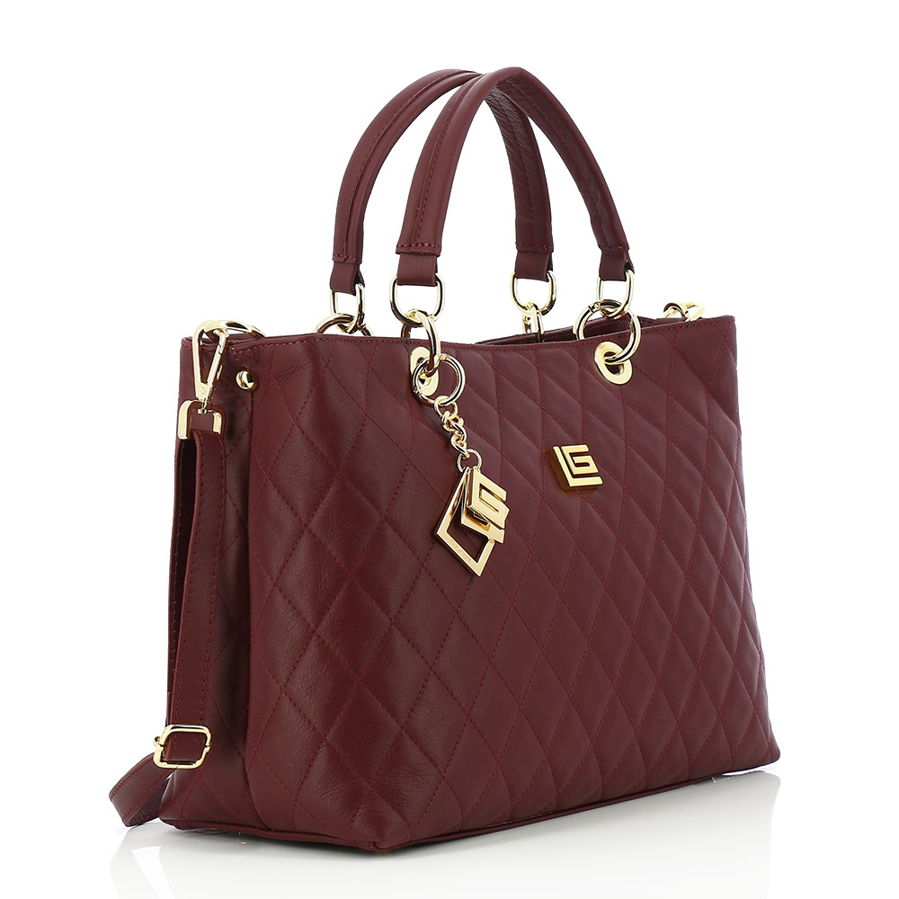 Women's casual bag, made of both pure leather and textile. Length 35cm, width 15cm, height 25cm.