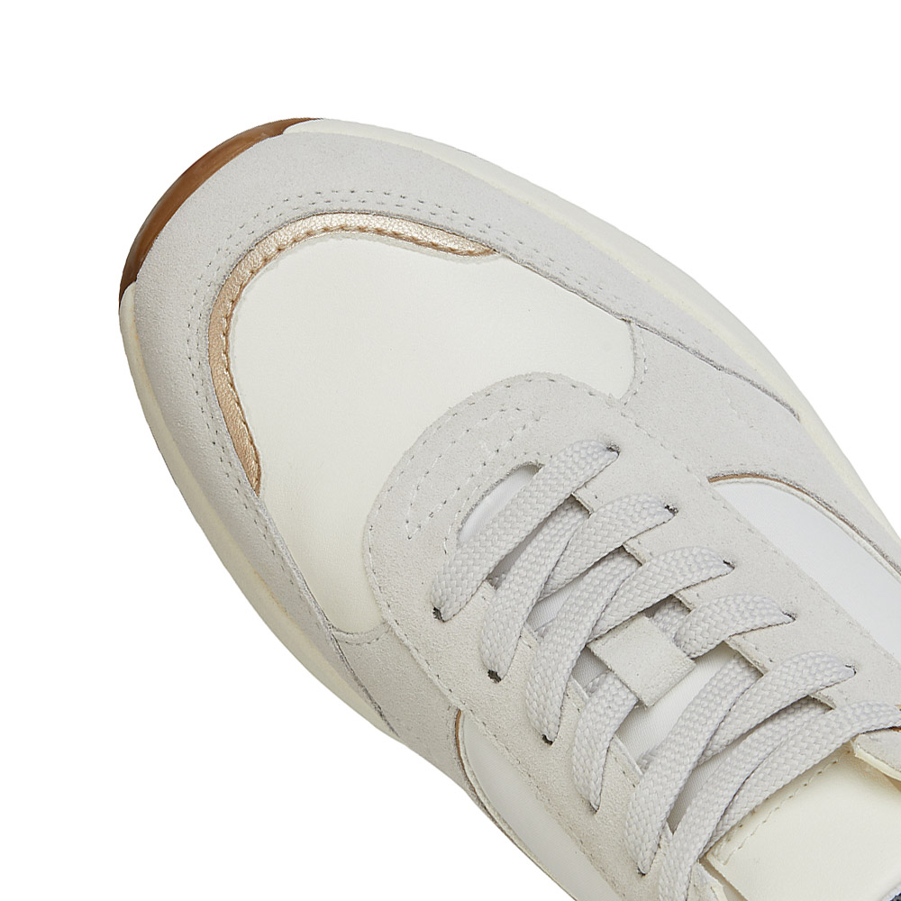 • Interior: Fabric • Exterior: Leather & Fabric • Fastening: Laces • Heel height: 5 cm • GEOX branding • Upper: 38% synthetic-32% leather-30% fabric Lining: 75% Fabric-25% Synthetic Outer sole: 100% rubber Bottom: 100% Fabric Geox women's sneakers made of excellent quality leather, fabric with glitter weave and eco leather that uniquely protect the foot in every activity. Respira technology, which allows the natural temperature regulation of the foot and extra light anti-vibration sole made of high quality materials with extremely soft spheres. Aerantis technology with perforated non-slip sole that allows the foot to breathe. Sole thickness 5 cm. Detachable bottom.